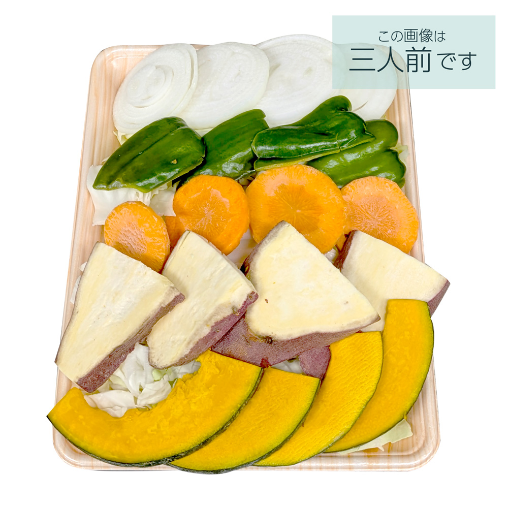 内容(1人前):キャベツ約100g、たまねぎ約53g、さつまいも約27g、かぼちゃ約13g、人参約13g、ピーマン約13g